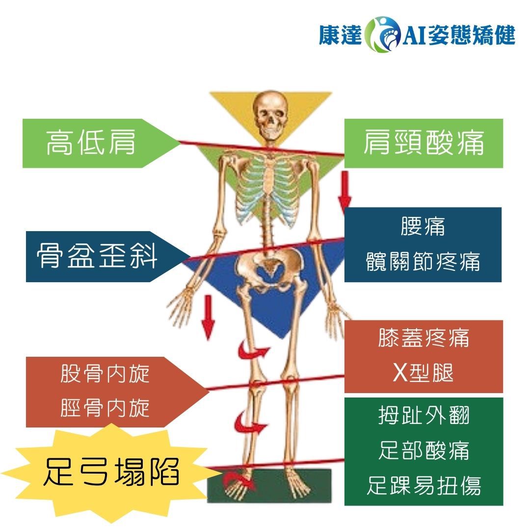 想想看,人體結構中最常處在什麼姿勢下做事、運動,答案就是「站姿」。盡然要站,那免不了雙腳就是承接全身重量的地基,但如果地基出了問題,會面臨到什麼呢??